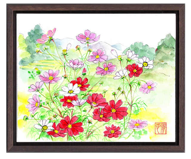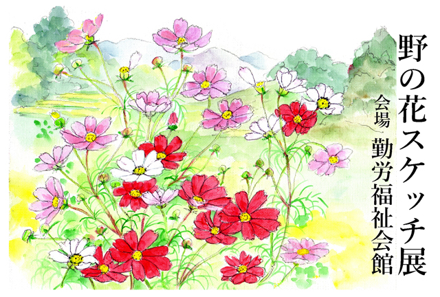 シニア30名の作品120点 野の花・庭に咲く草花・木に咲く花・野菜果物をスケッチ 透明水彩で彩色した4号〜8号/葉書・短冊 |