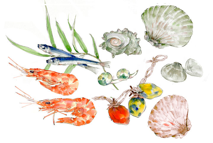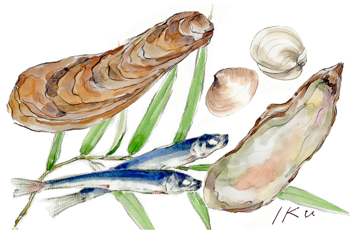 | ホタテ・エビ・メザシ・アサリ・クワイ・ホシカキ | ||||||