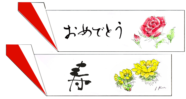 | 手作りした箸袋に描いた野の花スケッチ 祝いの席では祝福の場を盛り上げ,会話が弾み 思い出深いものになります。 裏面に一人ひとりへのメッセージを 書いておくと感激 |