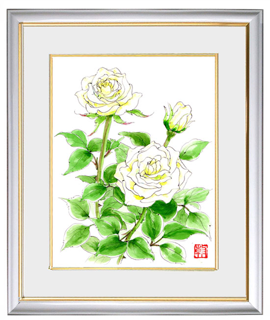 播野朝子 (吉祥寺教室) バラ 散歩道に生垣のバラが誇らしげに咲いているのを見つけ 久しぶりにバラを描いてみた |